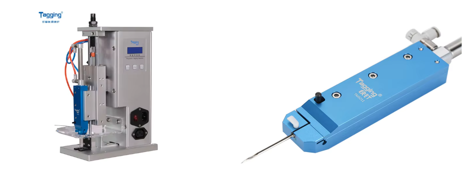 Đặc điểm nổi bật: Máy gắn mác, dán nhãn găng tay, khăn, tất bằng khí nén được thiết kế cho việc gắn thẻ nhanh và hiệu quả với thân máy bằng nhôm nhẹ và kim nhỏ độ chính xác cao. Máy hoạt động với áp suất khí 5~ 8 Bar, sử dụng ti nhựa nylon/ PP loại nhuyễn và xử lý được sản phẩm dày đến 30mm. Kích thước nhỏ gọn, bền bỉ và phù hợp cho các nhu cầu gắn nhãn chuyên nghiệp trong ngành tất, găng tay, khăn, và ngành may mặc.